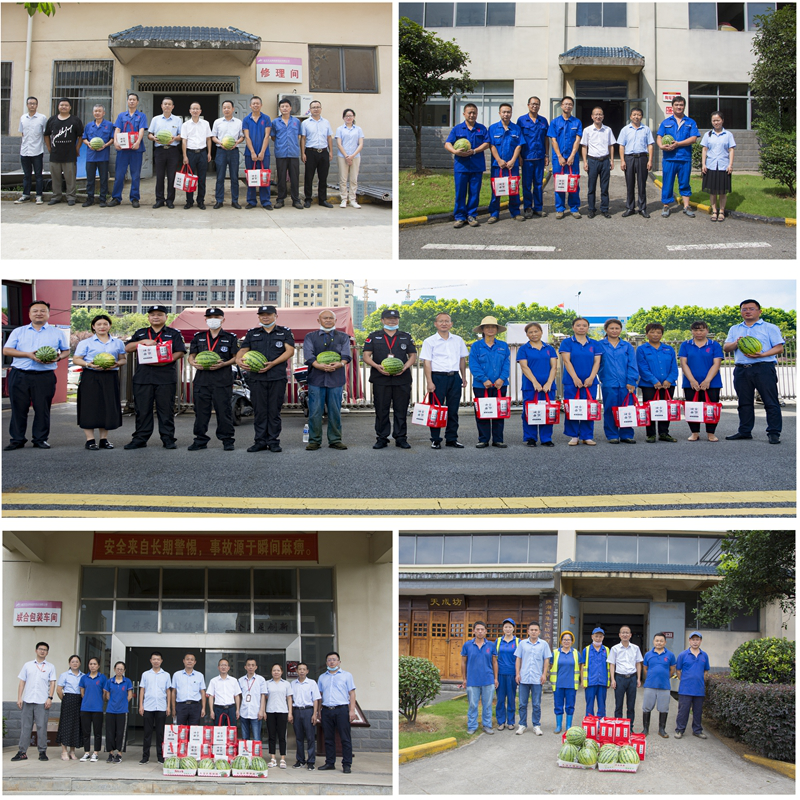 活動中,謝毅一行前往釀造、包裝、勾儲、后勤等一線部門,向工作在一線的員工送去西瓜、古樂神曲等防暑降溫物品,并叮囑他們要加強(qiáng)自身防護(hù),做好防暑降溫工作,確保人身安全、生產(chǎn)安全。