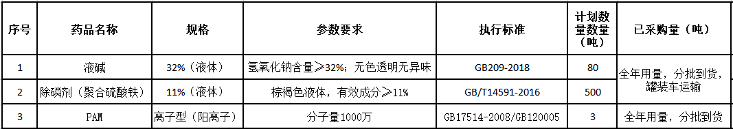 1、項目名稱:黃鶴樓酒業(yè)隨州廠區(qū)污水站藥劑采購項目