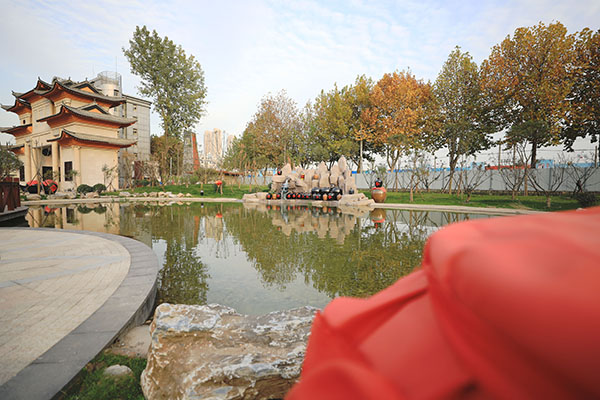 一入大門便可瞧見的牌樓建筑和游樂景區(qū)便是韓天衛(wèi)團隊的成果之一。
