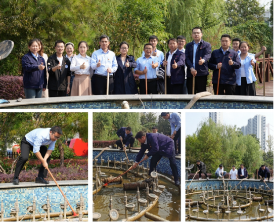 清掃活動現(xiàn)場,黨員同志們拿起長刷,團結(jié)協(xié)作、凝心聚力,清掃洗刷了洗噴泉池面、管道等地,充分發(fā)揚黨員先鋒模范作用。