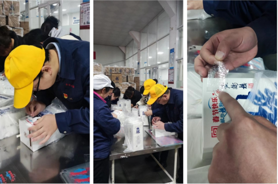 正逢年底生產(chǎn)旺季,為確保春節(jié)定制版產(chǎn)品順利交付,生產(chǎn)黨支部響應(yīng)號召,積極發(fā)揮黨員先鋒模范作用,開展產(chǎn)品貼標(biāo)活動。時間緊、任務(wù)重,在車間工作人員指導(dǎo)下,大家有序進(jìn)行,埋頭苦干、一絲不茍,與一線員工齊奮斗,本著不浪費(fèi)一張標(biāo),不貼花一個盒子原則,保質(zhì)保量完成任務(wù)。