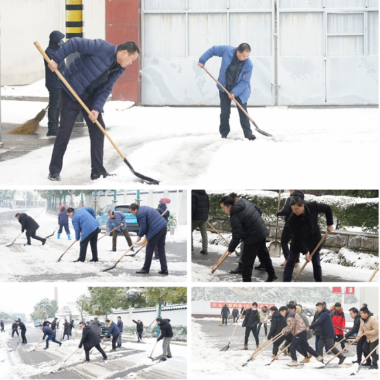 2月初,武漢市氣象臺(tái)相繼發(fā)出暴雪黃色預(yù)警、道路結(jié)冰橙色預(yù)警。2月4日,以雪為令、迅速行動(dòng),黃鶴樓酒業(yè)黨委書記、董事長許鵬,黨委副書記、總經(jīng)理朱向紅,黨委副書記、副總經(jīng)理麻玉俠,高管黃曉文、王超、魏國帶領(lǐng)志愿者們齊上陣,掃雪除冰、暖心護(hù)航。