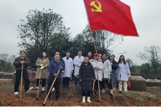 活動中,大家齊心協(xié)力、配合默契,拿起鋤頭、鐮刀將室外陶壇林參觀通道區(qū)域內(nèi)的雜草及樹枝修剪干凈,并及時清理垃圾,充分彰顯黨員先鋒模范作用。