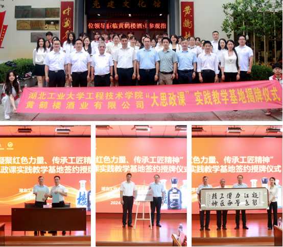 6月24日,湖北工業(yè)大學(xué)工程技術(shù)學(xué)院與黃鶴樓酒業(yè)舉行“大思政課”實踐教學(xué)基地簽約及授牌儀式。湖北工業(yè)大學(xué)工程技術(shù)學(xué)院黨委書記朱愛軍、副院長姜偉,黃鶴樓酒業(yè)黨委委員、技術(shù)質(zhì)量中心總監(jiān)李良,工會主席、黨工團中心總監(jiān)張瑞,人力資源中心總監(jiān)張佳出席活動。
