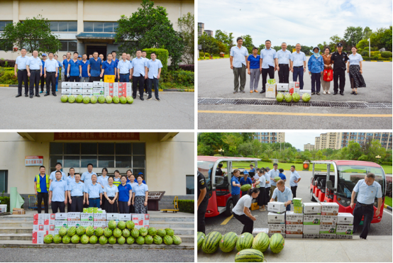 謝毅一行到釀造車間、包裝車間、綠化、保潔等部門,將西瓜、清涼飲料、防暑藥品等物資送至一線員工手中,并叮囑他們?cè)谧龊帽韭毠ぷ鞯耐瑫r(shí),一定要注意防暑降溫,合理安排工作時(shí)間,防止高溫中暑,確保自身安全。