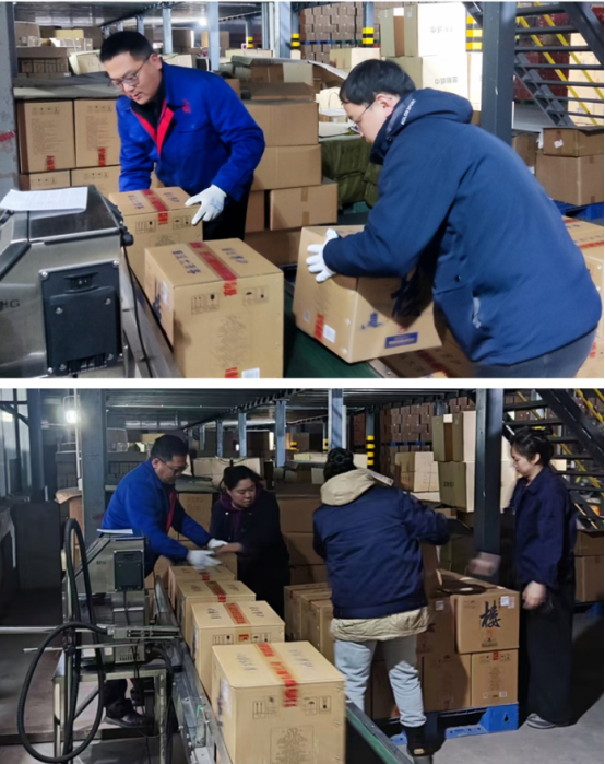 歲末年關(guān),市場(chǎng)需求擴(kuò)大,訂單激增,待噴字發(fā)貨的成品酒每天達(dá)上千件,生產(chǎn)黨支部響應(yīng)號(hào)召,組成一支由黨員先鋒帶頭的噴字隊(duì)伍深入生產(chǎn)一線。時(shí)間緊,任務(wù)重,黨員、積極分子、團(tuán)員為一箱箱成品酒噴上客戶(hù)名,現(xiàn)場(chǎng)人員各司其職,齊心協(xié)力,以實(shí)際行動(dòng)踐行一切服務(wù)銷(xiāo)售,助力旺季攻堅(jiān)戰(zhàn)。