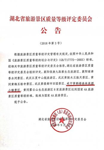 9月12日,湖北省旅游景區(qū)質量等級評定委員會發(fā)布公告,黃鶴樓森林美酒小鎮(zhèn)正式獲批為國家AAAA級旅游景區(qū)。
